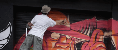 Inspiré par le manga, le jeu vidéo et l’illustration, Choq cultive un style accessible et joyeux. À travers ses fresques, il redonne à la rue une énergie positive, entre humour et humanité.